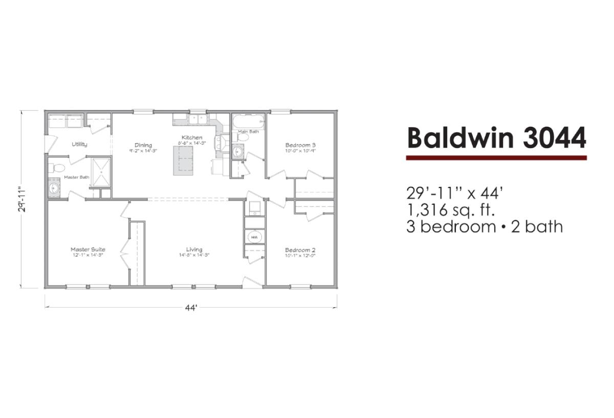 3 beds / 2 baths / 1316 sq. ft. / 29′ 11″ x 44′ 0″
