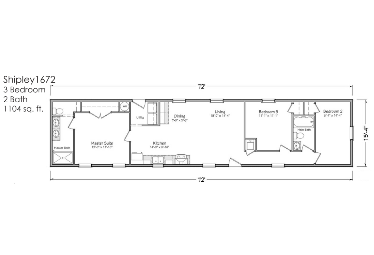 3 beds / 2 baths / 1104 sq. ft. / 15′ 4″ x 72′ 0″