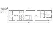 Beds: 2 Baths: 2 Sq Ft: 951 W x L: 16′ 0″ x 62′ 0″