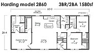 Beds: 3 Baths: 2 Sq Ft: 1580 W x L: 26′ 4″ x 60′ 0″