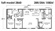 Beds: 3 Baths: 2 Sq Ft: 1580 W x L: 26′ 4″ x 60′ 0″