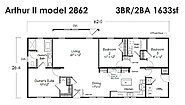 Beds: 3 Baths: 2 Sq Ft: 1633 W x L: 26′ 4″ x 62′ 0″